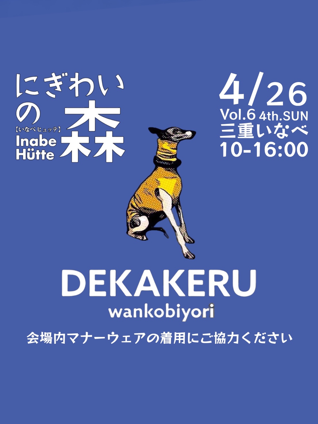 中止の場合は前日にインスタグラム@dekakeruwankobiyoriにておしらせいたします。