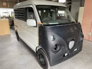 エアロパーツのサフェーサーペイントが完了しましたら灯火類の配線加工に入ります。