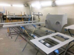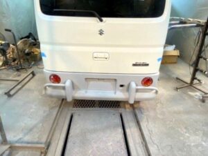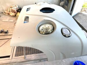 エアロパーツのサフェーサーペイントが完了して灯火類のフィッティング