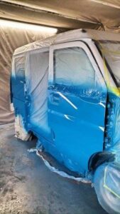 スライドドアのペイントも完了して本体側のペイントに入りました。
