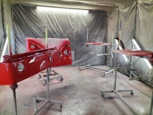 26Dec桑名市 K・K様 タイプ アーリーのエアロパーツの一色目&二色目のペイントが完了しました!製作状況お知らせサフェーサーペイントが完了して一色目のペイントも完了し2色目のペイントも 完了しました。 続いてボディー側のペイントに入ります。 完成までお時間頂きますが宜しくお願い致します。 オートスピリット 車カスタムランキング キャンピングカーランキング にほんブログ村 にほんブログ村 車や修理の事だけじゃなく、お気軽に遊びに来て下さいね~ カワイイ雑貨やパーツ、非売品まで色々ございます。 カントリー雑貨やアメリカン雑貨の他ムーンアイズの商品も扱っていますので、 お近くを通った時はお気軽にご来店下さい。